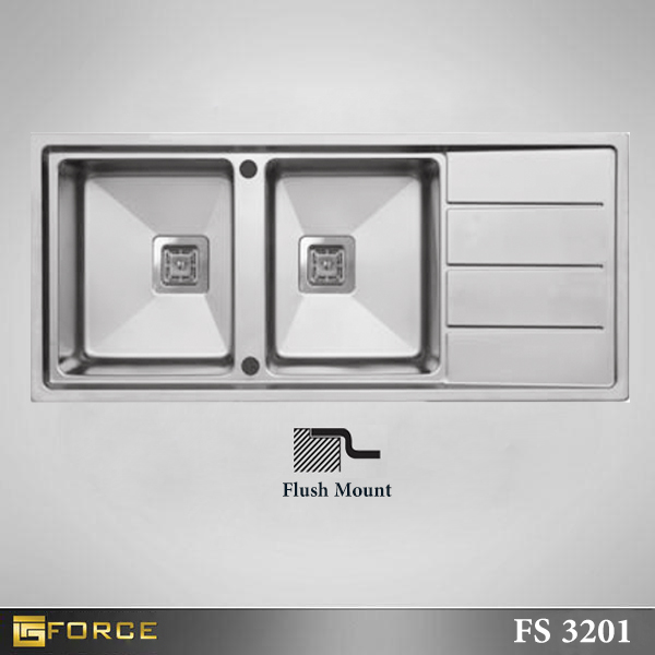 سینک دو لگن استیل 304 اتومات لب برگردان داخلی